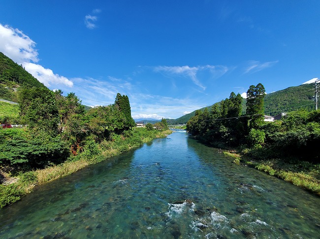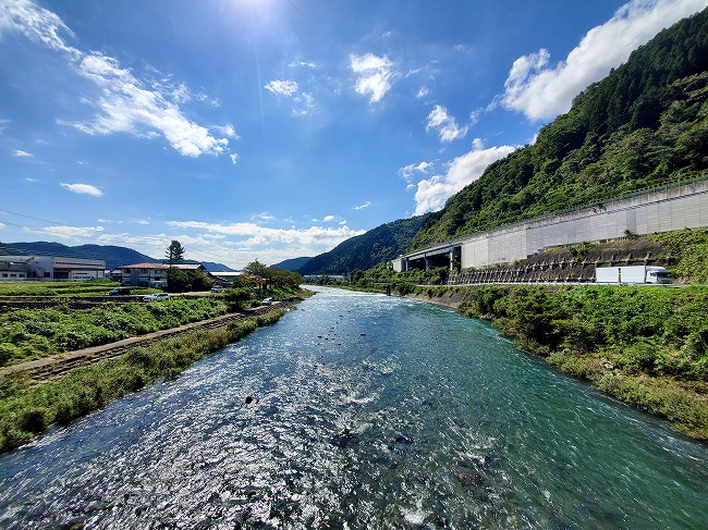 上流へ川を見ながら走る