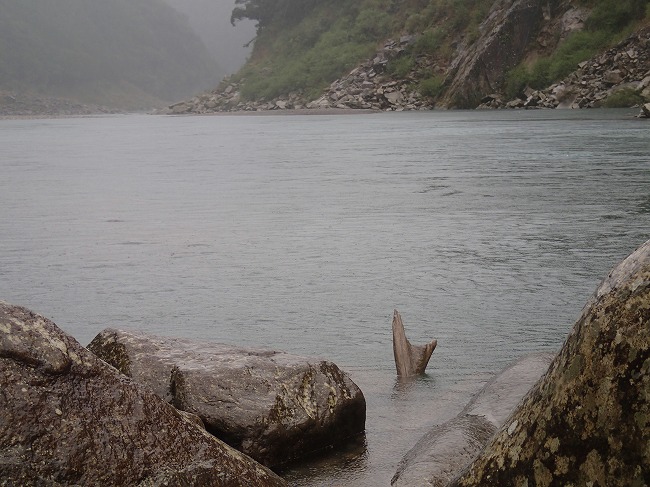 流れが少し緩くなるところで