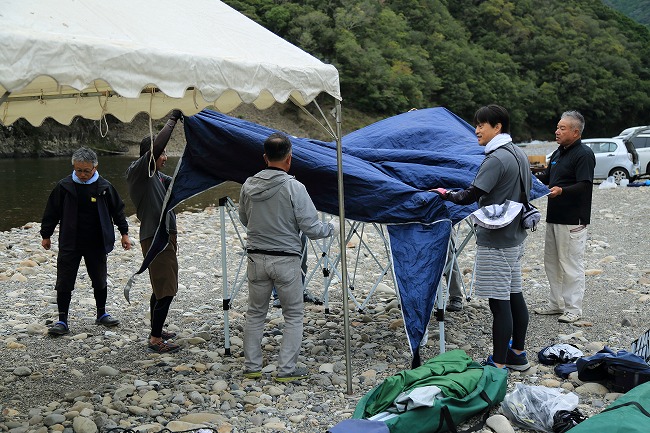 準備の段階から雨が降って寒いし