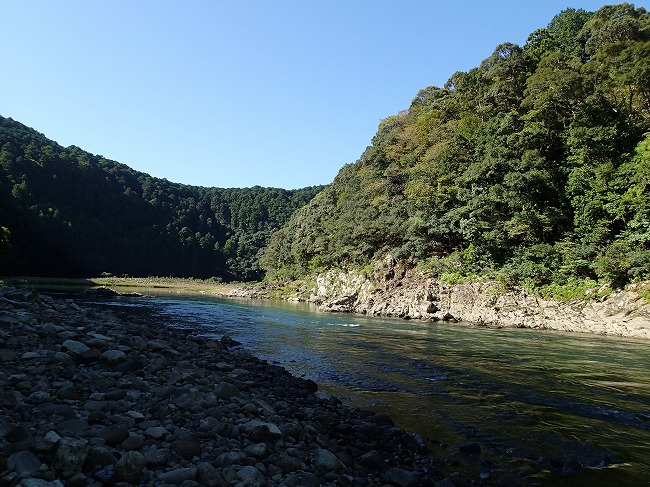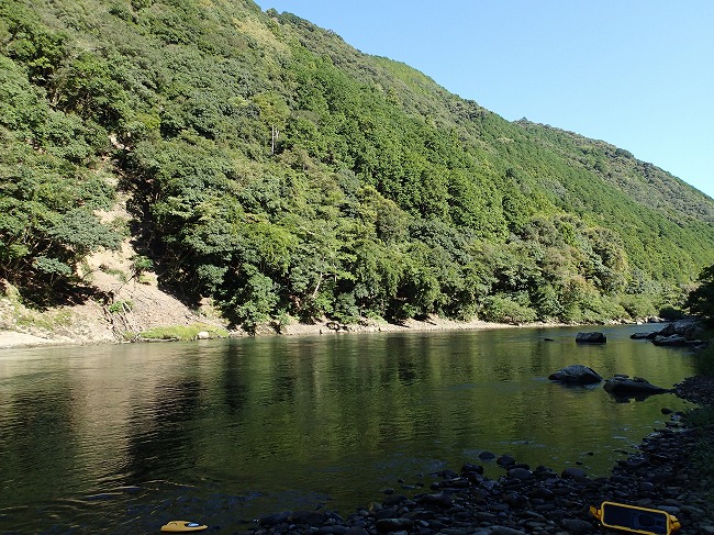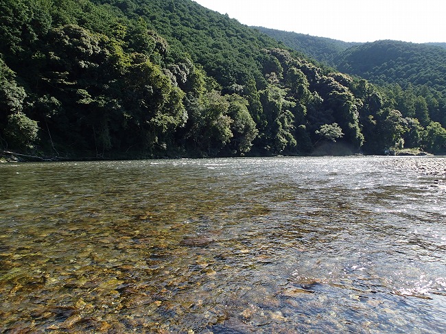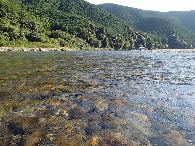 画像で分かるように日陰で川底全く見えず