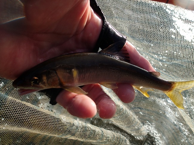掛かり鮎がオトリを引っ張って私の目の前に帰ってきた^^