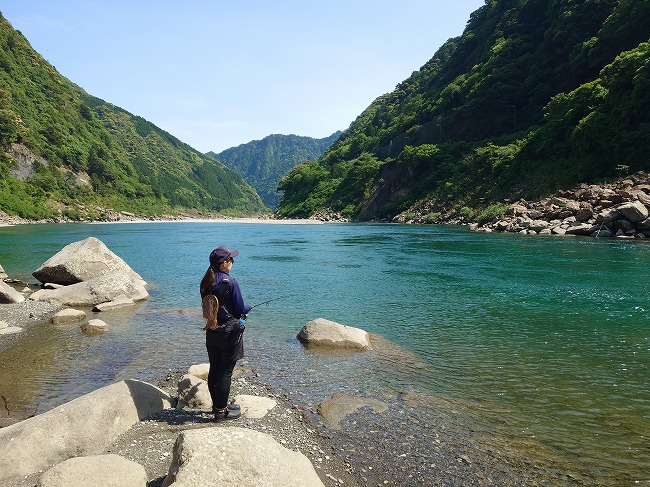広大な熊野川本流で釣らせてあげたかったわ
