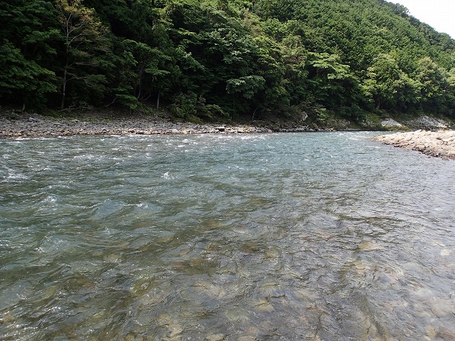 降りた正面の瀬は水量はイイ感じなんやけど
