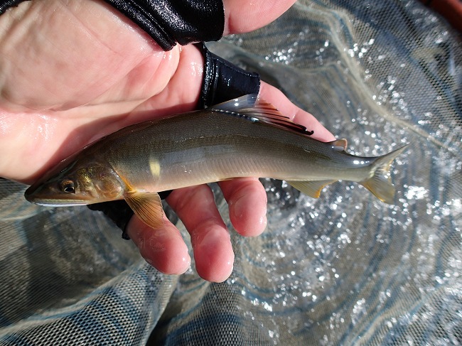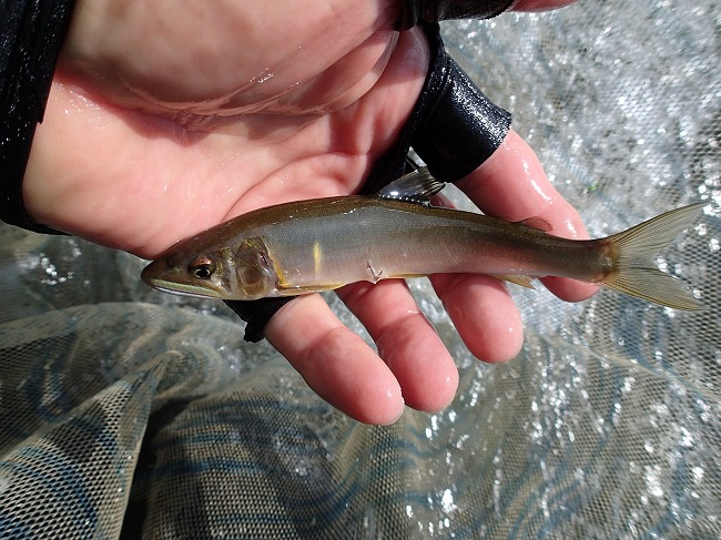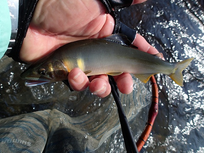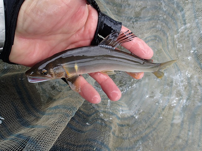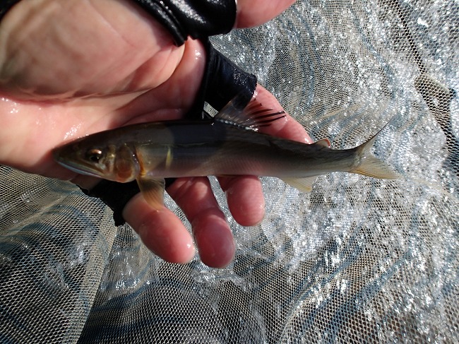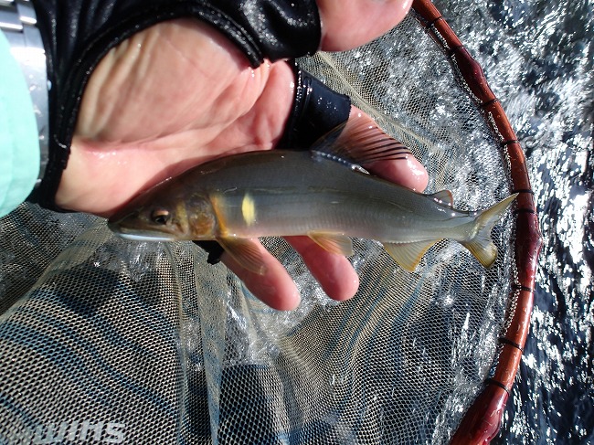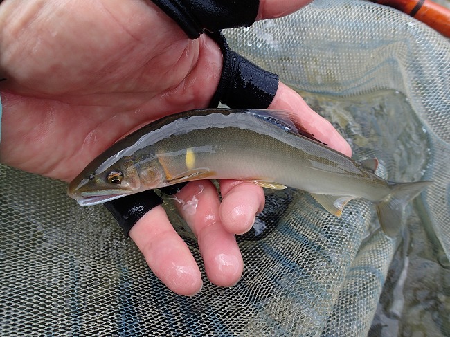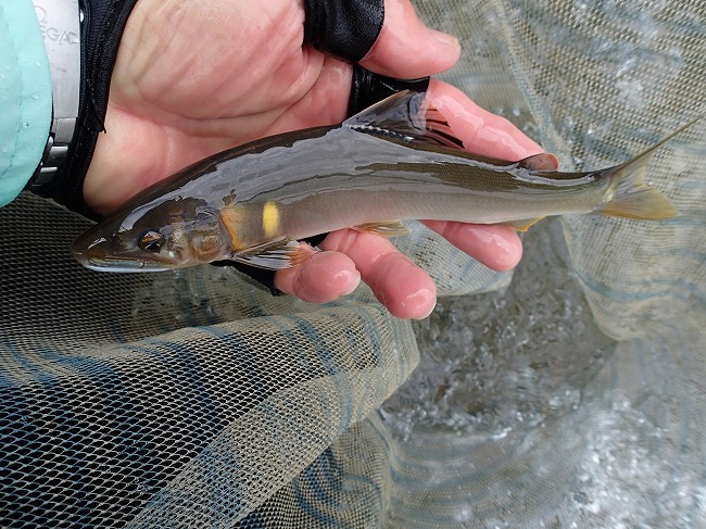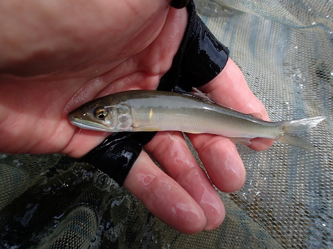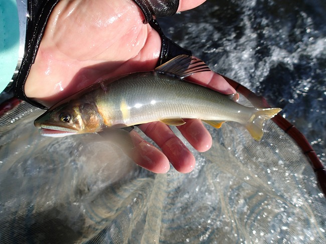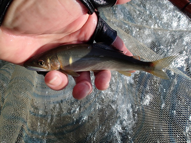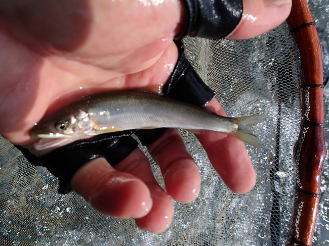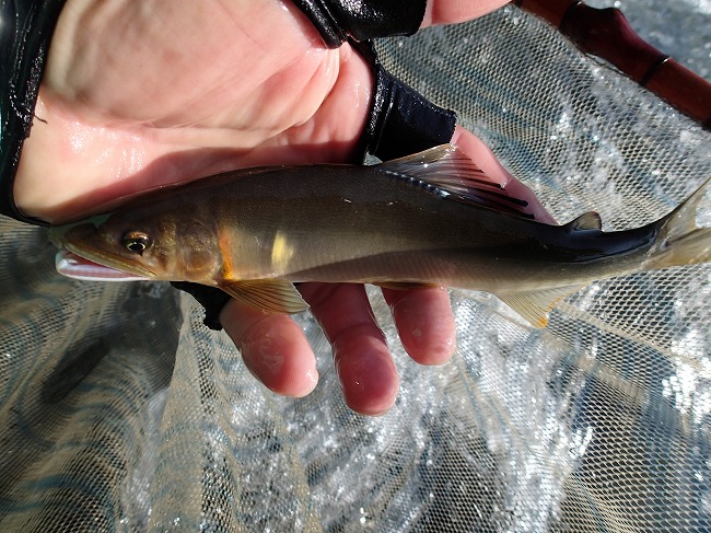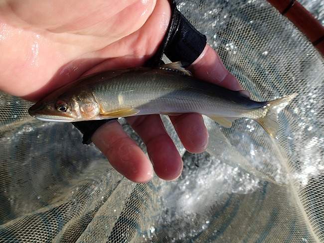 右岸際でもアユの姿がチラホラ見えてる