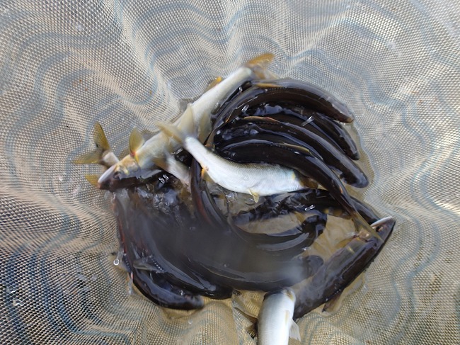 浅瀬を歩いてると踏むほどアユは居ますよ^^